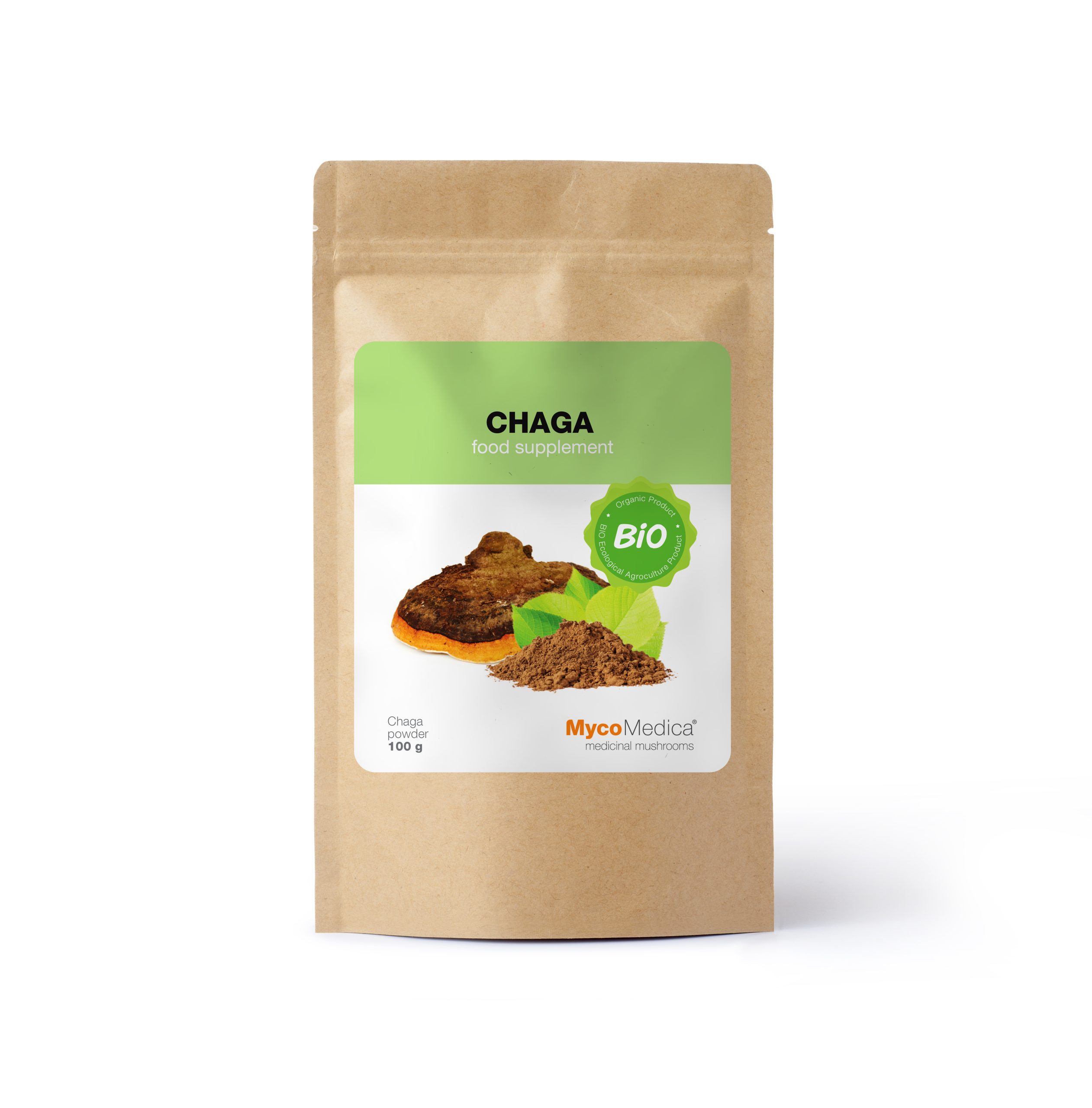 Zawartość opakowania: 100 g BIO proszku z owocników Inonotus obliquus (biomasa/powder)