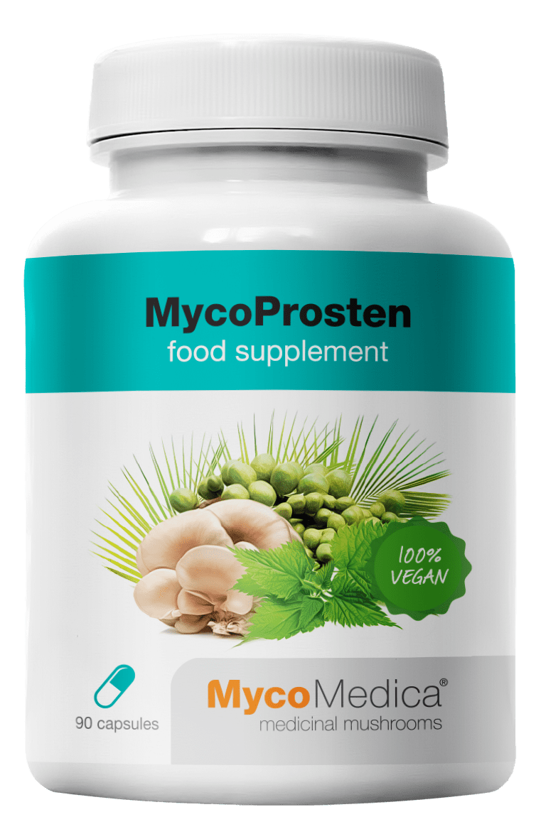MycoProsten jest przeznaczony dla mężczyzn w celu wspomagania prawidłowego funkcjonowania gruczołu krokowego. Wykorzystuje pozytywne działanie leczniczego grzyba Maitake, pokrzywy zwyczajnej, boczni piłkowanej, cynku, selenu i witaminy E. Ich synergiczne działanie wspomaga naturalny system obronny, chroni komórki przed stresem oksydacyjnym, wspomaga normalne funkcjonowanie dróg moczowych i pomaga utrzymać odpowiedni poziom testosteronu we krwi.