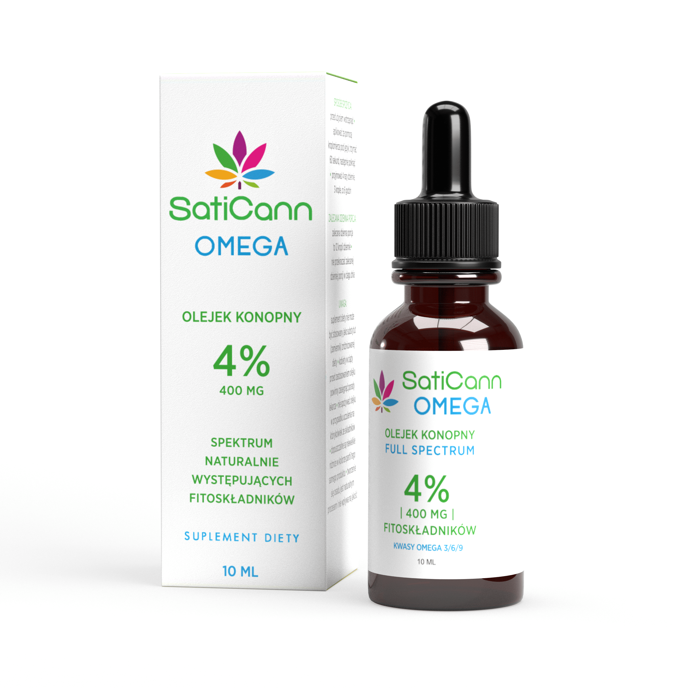SatiCann Omega 4% składa się z organicznego oleju konopnego, który zawiera min. 400 mg naturalnie występujących kannabinoidów i innych fitoskładników.