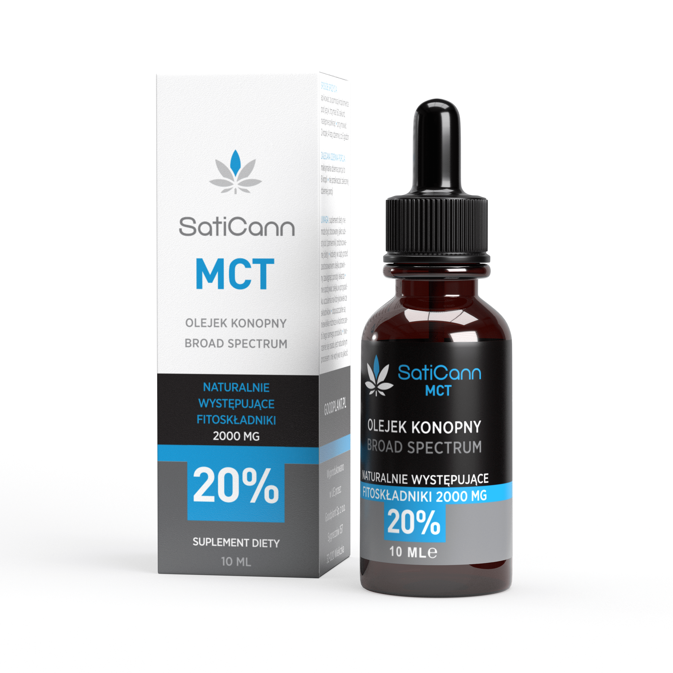 SatiCann MCT 20 % składa się z oleju konopnego, zawierającego 2000 mg naturalnie występujących fitoskładników (w tym CBD) oraz organicznego oleju kokosowego MCT (średniołańcuchowe kwasy tłuszczowe). SatiCann MCT 20% jest klarowny, ma delikatny smak o lekkim aromacie kokosa i konopi.